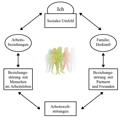 Beziehungsebenen, die gegenseitigen Einfluss auf die Arbeitswelt haben.